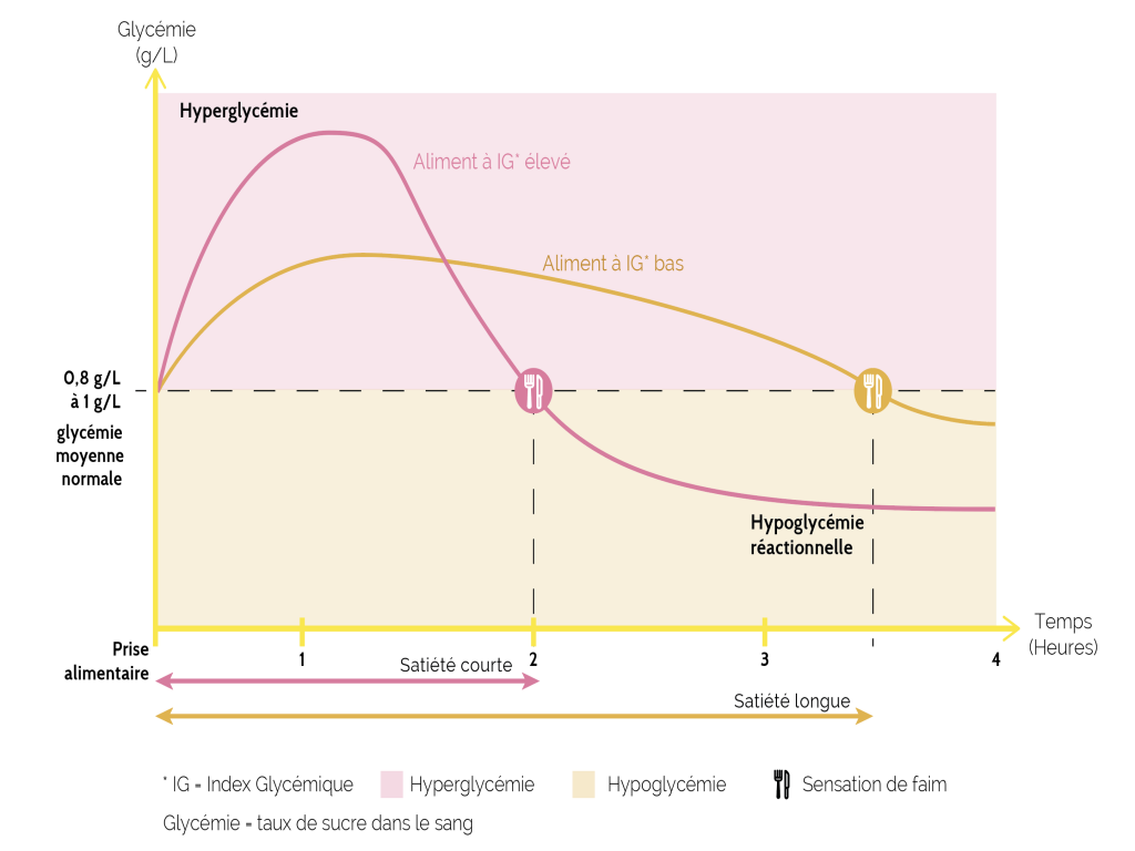En continuant à manger des aliments à IG hauts, ce phénomène se répète jusqu’à ce que le corps retrouve un taux de sucre stable.